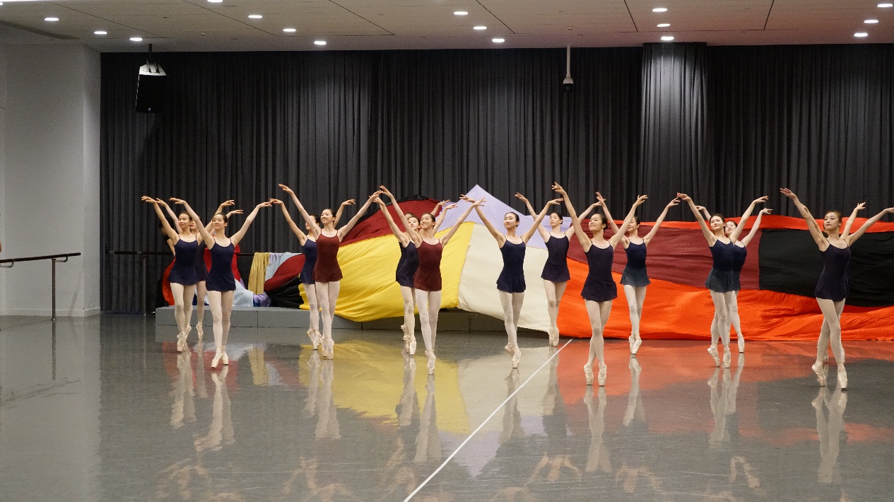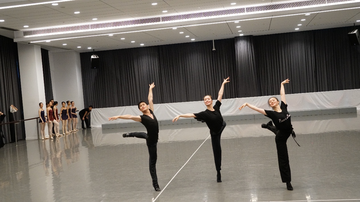 学生们也一丝不苟,毫不松懈,即便是在候场或是休息的时候,视线也牢牢地跟着正在进行排练的师生身上,或是在一旁默默地练习着自己的舞蹈动作。
