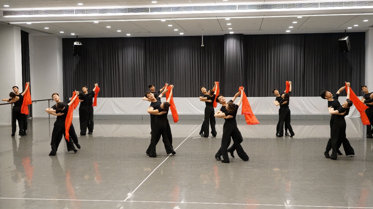 现下,距离首演仅有两周,《黄河》剧组的师生更是投入到了紧锣密鼓的排练当中。在排练教室里,总能听到音乐一遍遍响起到,看到老师们不厌其烦地进行着指导,精雕细刻,细化着每一个动作的力度,每一步走位的角度,甚至是指尖的弧度,都力求完美。老师们不仅是站在一旁的指导者,也常常亲自上阵示范,让学生们更为直观地领会到动作的要义。