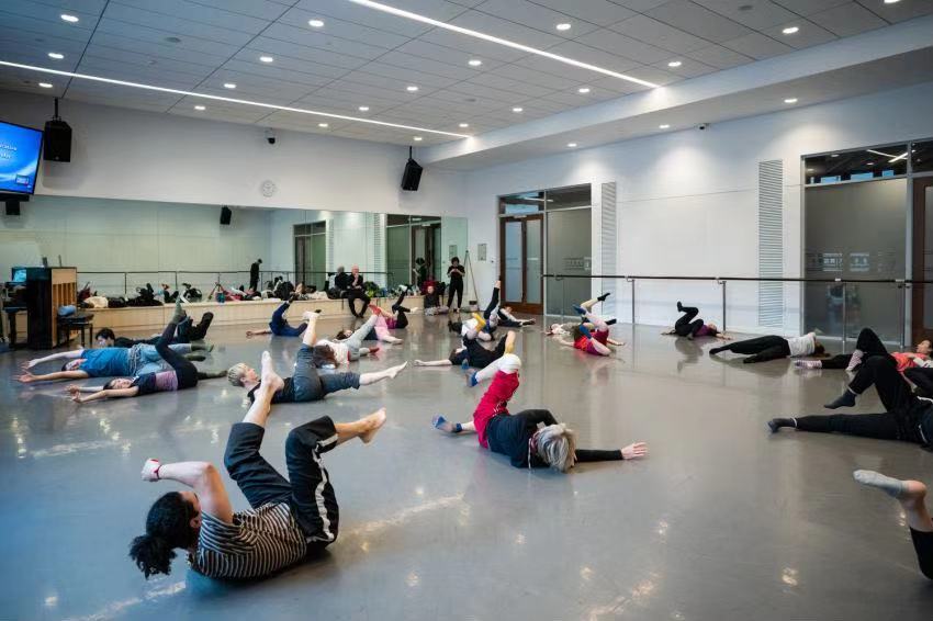 Beth教授开场时的热身活动率先打破了学员们对现代舞“走路”热身的惯性印象,从地面到中空、从足到手、从原地到切换空间并模仿他人造型的“画圈”练习迅速热场,学员们不由自主地投入到这新颖的热身运动之中。
