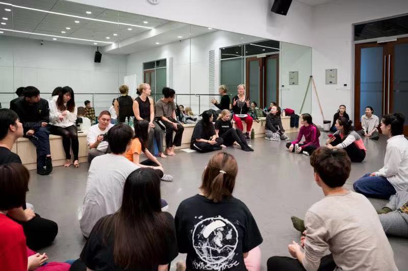 10月16日下午13:30,来自美国密歇根州立大学的Amy Chavasse教授、洛克菲勒大学的自由舞者与科学家Beth Graczyk教授等五位教师应邀来到开云足球首页官网下载舞蹈学院201教室,展开一场《身体即兴与故事性即兴》的交流工作坊,由我院党总支部书记、副院长张麟老师及舞蹈编导系主任余霄老师主持,我院硕士研究生及16级舞蹈编导班有幸成为本次工作坊学员。