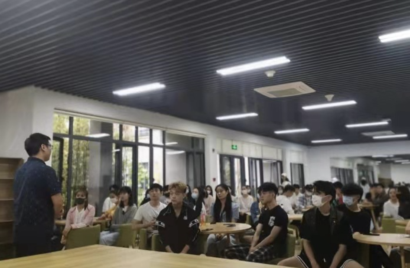生乐物业负责人印经理、辅导员张兴峰老师则分别就学生公寓垃圾分类要求、消防安全提示、日常管理规定等内容进行了详细的宣讲、说明,同时布置了演练具体安排。