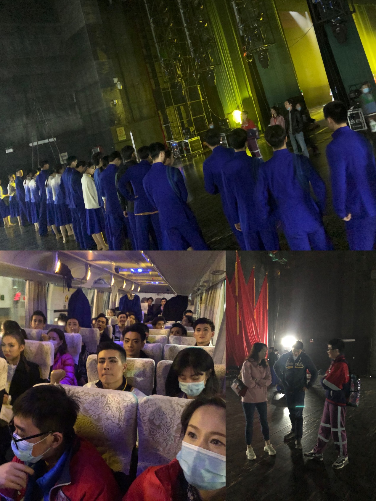 15日依旧是雷打不动的基本功训练和排练,团队成员虽然疲惫,但依旧保持着高度的责任感、使命感和荣誉感,排练、走台、化妆、后勤保障,大家各司其职,只为当晚的精彩亮相。张麟书记和杨新华副院长利用从酒店到剧场的大巴上也给演员们加油鼓劲,对于走台合光中出现的细节问题,杨院长也给予演员们悉心的指点。