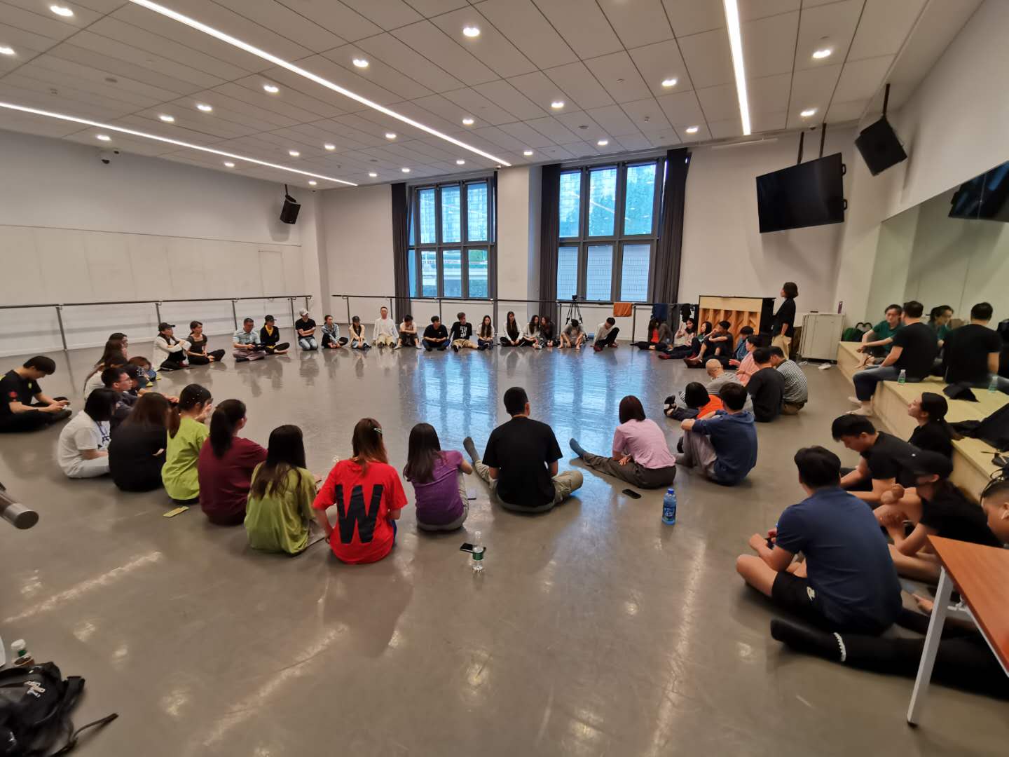 621日上午900,在经过一晚的顺利演出之后,两院的师生们汇聚201教室,展开了教学实践交流,针对已呈现的作品做了相互了解并进行创作思想上的交流和互动。不仅如此,同学们还根据新的命题展开现场即兴创作,以肢体语言代替口头语言进行交流,更激发了在场同学们的热情,气氛十分活跃。