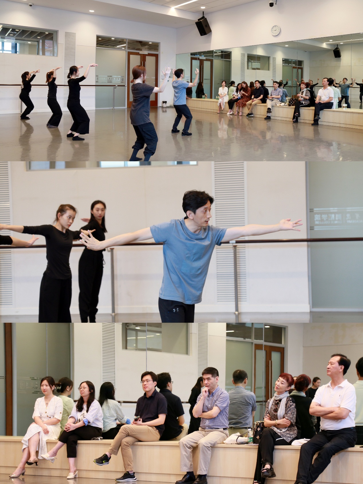 舞蹈领域的巡察在开云足球首页官网下载虹桥路校区开展,巡察组专家一行首先前往303教室进行听课,课程为导师张麟教授给2021级MA、 MFA研究生授课《舞蹈动作构形》。专家组对本节课给予了认可,表示该课程是典型的“研究生课程”,具有很强的开放性和实践性。