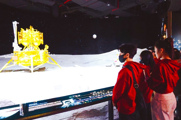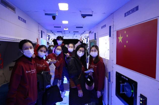让人印象最深刻的是“征程”展厅。在这里,随着“天和”核心舱、“嫦娥五号”探测器、“玉兔二号”月球车、“祝融号”火星车等模型一一映入眼帘,师生们更加深刻地了解到我国在中国共产党的领导下走向航天强国的历程,感受到航天成果的来之不易和“航天精神”的可贵。大家“置身”月面近距离观察飘扬着五星红旗的“月球车”,走进11还原的“天和号”核心舱,体验航天员工作和生活的环境,身临其境感受航天人艰苦奋斗、开拓进取、无私奉献的伟大精神。