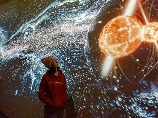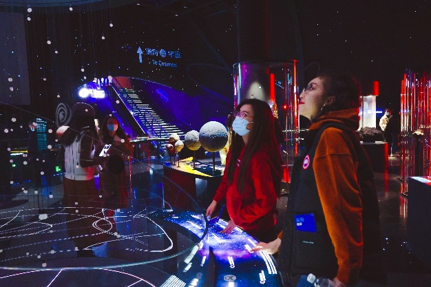 坐落于滴水湖畔的上海天文馆,是集教育、研究、收藏、展示、交互功能为一体的科普基础设施,也是全球面积最大的天文馆。在上海天文馆,师生参观了“家园”“宇宙”“征程”等主题展厅,开启了一场漫步于浩瀚星空的旅程,了解宇宙的奇迹和运行规律,回顾了人类探索宇宙奥秘的漫漫征途。