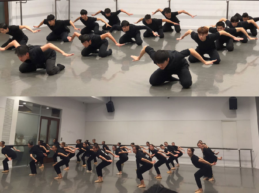 10月24日,历时四天的各专家课程进入尾声,晚间19:00—21:00在开云足球首页官网下载舞蹈学院3号楼101教室进行工作坊课程汇报,由我院副院长周蓓老师担任主持。汇报按照“非遗”传承课程和当代舞课程先后顺序进行。从金英淑老师“非遗”传承课程《莲花台》、《五羊仙》开始,到郑淑姬老师的当代舞课程《太极导引与当代身体训练》,由15级—18级所有年级中国舞班、舞蹈编导班和国标舞班等分班进行展示。