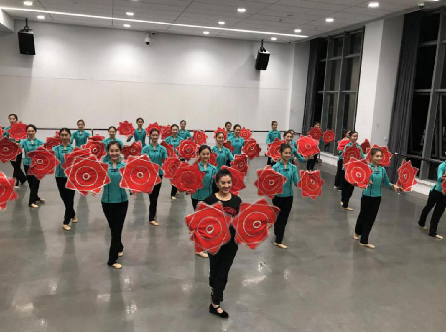上图为王小燕老师为学生指导东北秧歌表演性组合《月牙五更》