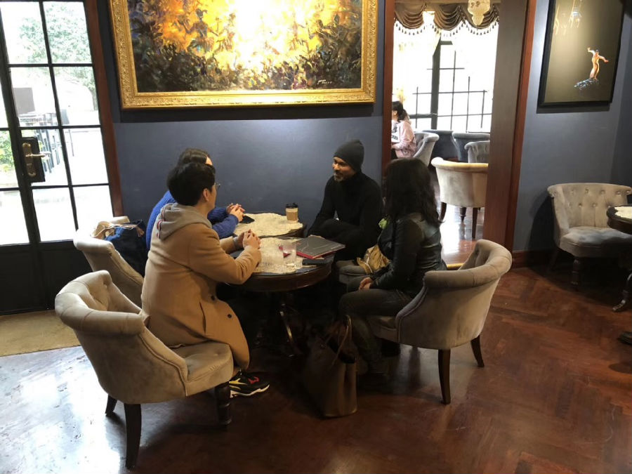 参观结束后,张麟老师代表我院陈家年院长和领导班子成员,就下一步的合作与阿库·汉姆展开深入交谈。阿库·汉姆对学生们的表现十分欣赏,他说,两次工作坊都能感受到我院学生的潜力!汉姆自己对中国民间舞和中国武术非常感兴趣,聘请了三个少林寺弟子亲自教他习武,这些经验都会体现在他的创作中。他还说,对于舞者和训练而言技术和动作固然重要,但学会思想,学会去感受,学会用身体去讲述更为重要!由此,大师再次强调了心灵与舞蹈之间的深刻联系。