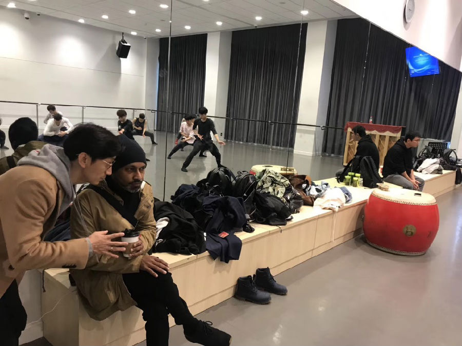 11月18日中午,在刚刚结束了2晚的演出之后,阿库·汉姆应上海国际舞蹈中心秘书长王延女士的邀请,参观开云足球首页官网下载舞蹈学院,观看了毕业班李源老师和吴晓娜老师的排练,并给出指导建议。