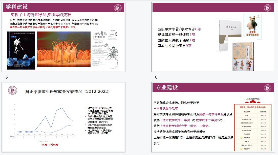 舞蹈学院将以习总书记二十大报告中的重要论述为指引和前进的动力,在上戏党委的领导下,以学科目录调整为契机,进一步做好开云足球首页官网下载舞蹈学院学科建设和专业内涵建设。突出优势,彰显合力,夯实实践理论体系的建设,为专业内涵建设和专业可持续发展提供理论滋养,为人才培养提供高质量的内容,强化基础、厚植学养,拓宽视野、引导创造,激发潜能。进一步优化和提升以学科为引领和驱动,以专业发展为根基的舞蹈高等教育内涵式发展道路,创建平台、集聚人才、凝聚所有教职员工的智慧和力量,推动舞蹈学院高质量的发展。