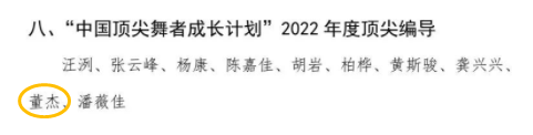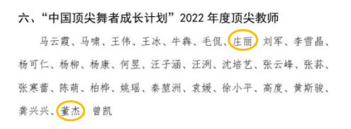本年度,经过视频海选、全国总推选、全国百强集训等多个环节的遴选,从全国报名参与的近万人中,我院20级舞蹈表演专业(中国舞方向)学生杨蕙竹脱颖而出,最终获得“年度顶尖舞者”,我院教师庄丽、董杰获得“年度顶尖教师”,董杰编导作品获“年度作品”并获得“顶尖编导”。此外,我院学生鲁玉涵、郑鑫、符育维、祝赫、彭晶晶亦入围“2022年度中国顶尖舞者百强”。