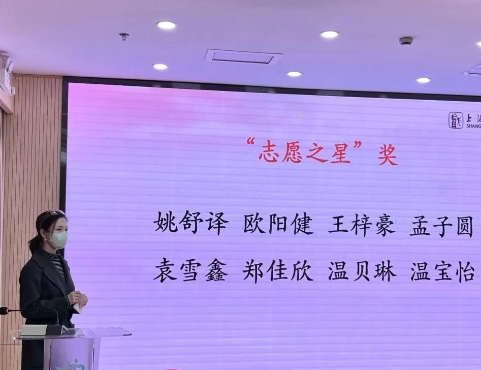 周蓓老师为获得“志愿之星”奖的同学颁发证书和奖品