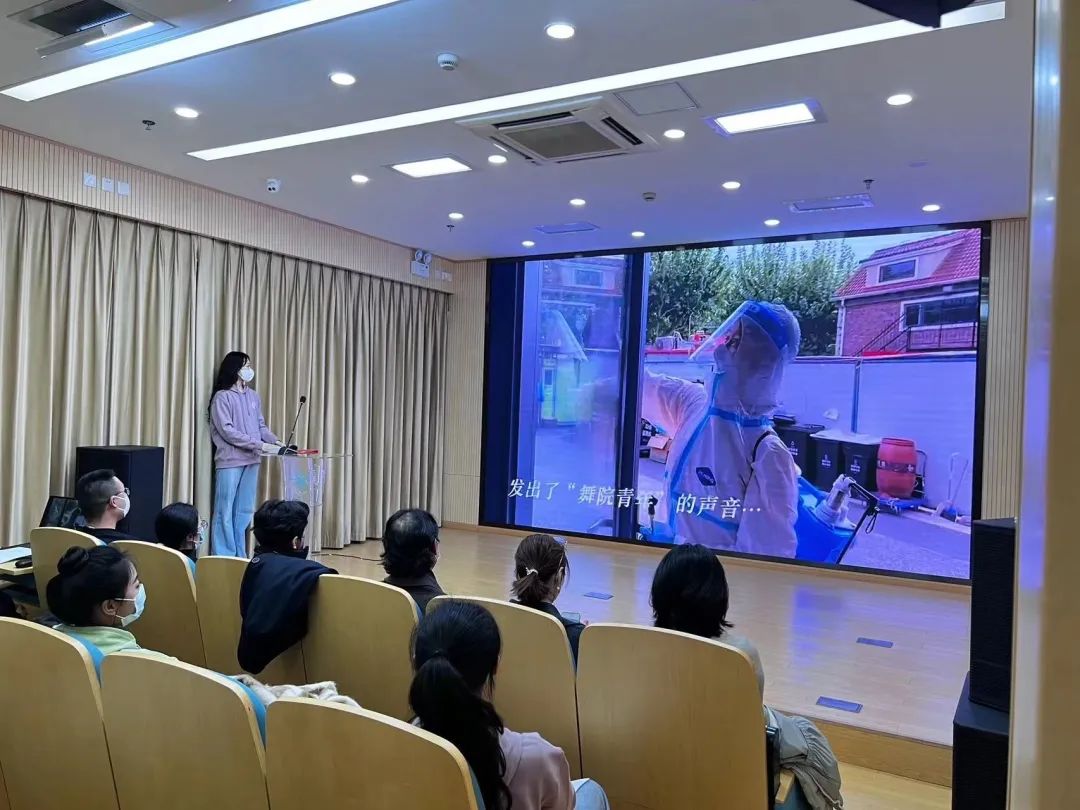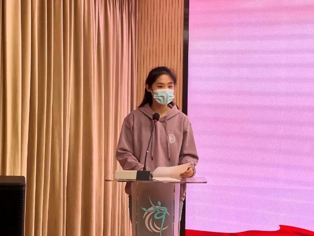 20国标王密宇同学和21硕士徐文璐同学代表志愿者作了发言。两位同学回顾了三个月以来亲身参与的抗疫经历,分享了担任志愿者的心得感受。他们都表示,要继续发扬志愿服务精神,用实际行动诠释青年的责任与担当,展示舞院学子昂扬向上的青春风采。