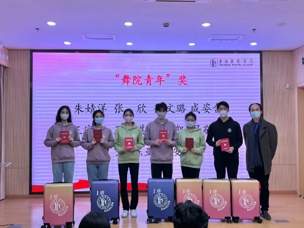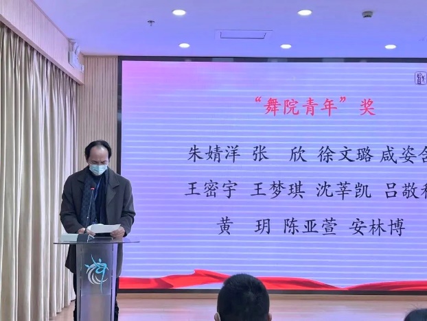 杨新华老师为获得“舞院青年”奖同学颁发证书和奖品
