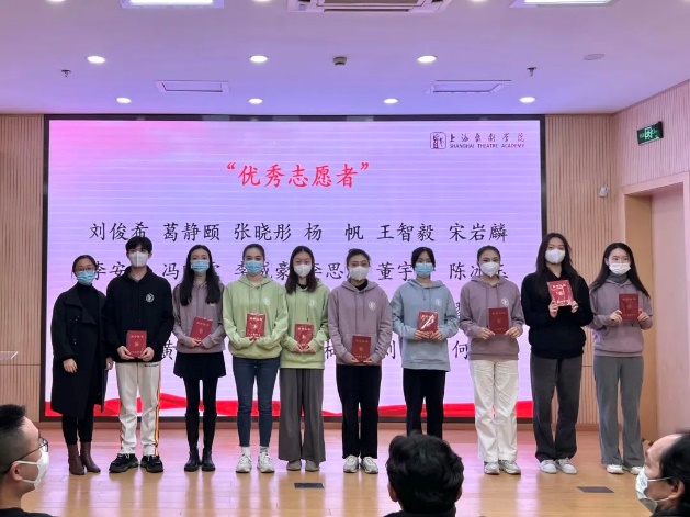 张麟老师代表学院领导班子对疫情期间参与志愿服务的同学表示了感谢,充分肯定了志愿者们无私奉献的精神和无限的创造力。张麟老师指出,“舞院青年”不再只是一个口号,而是一群人、一支队伍,是舞院学子义无反顾挺身而出、团结奋斗守望相助的精神象征,希望同学们继续传承“舞院青年”精神,发扬团结奋斗的优良作风,在艺术的殿堂里勇敢逐梦,在青春的赛道奋力奔跑!