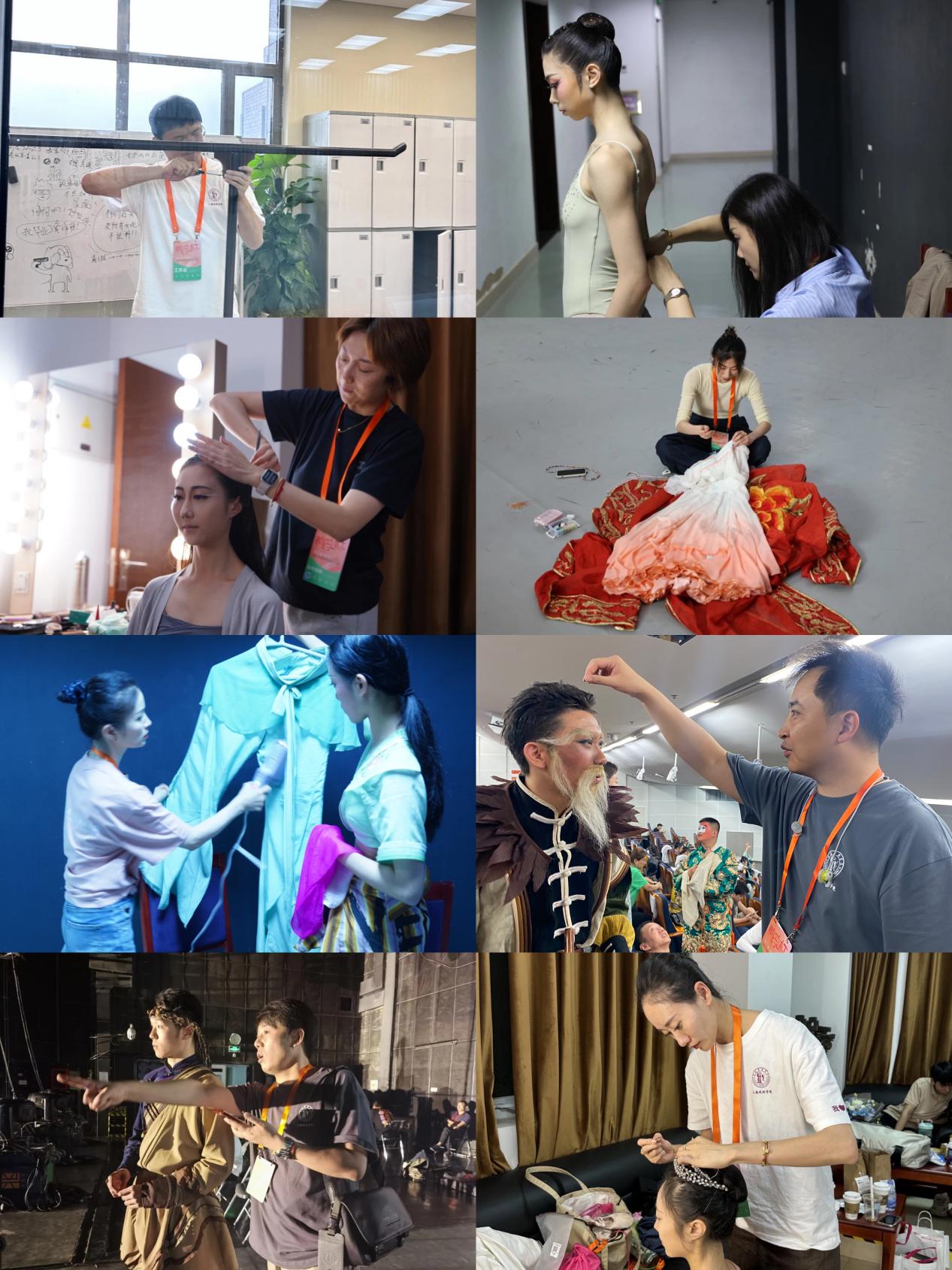 老师们不仅是精益求精的严师,也是万能的裁缝、化妆师、道具修整师。无论是在教室,还是在后台,都能看到老师们忙碌的身影。他们的鼓励和支持让同学们更加自信的走上舞台,与来自全国兄弟院校的选手们交流切磋。