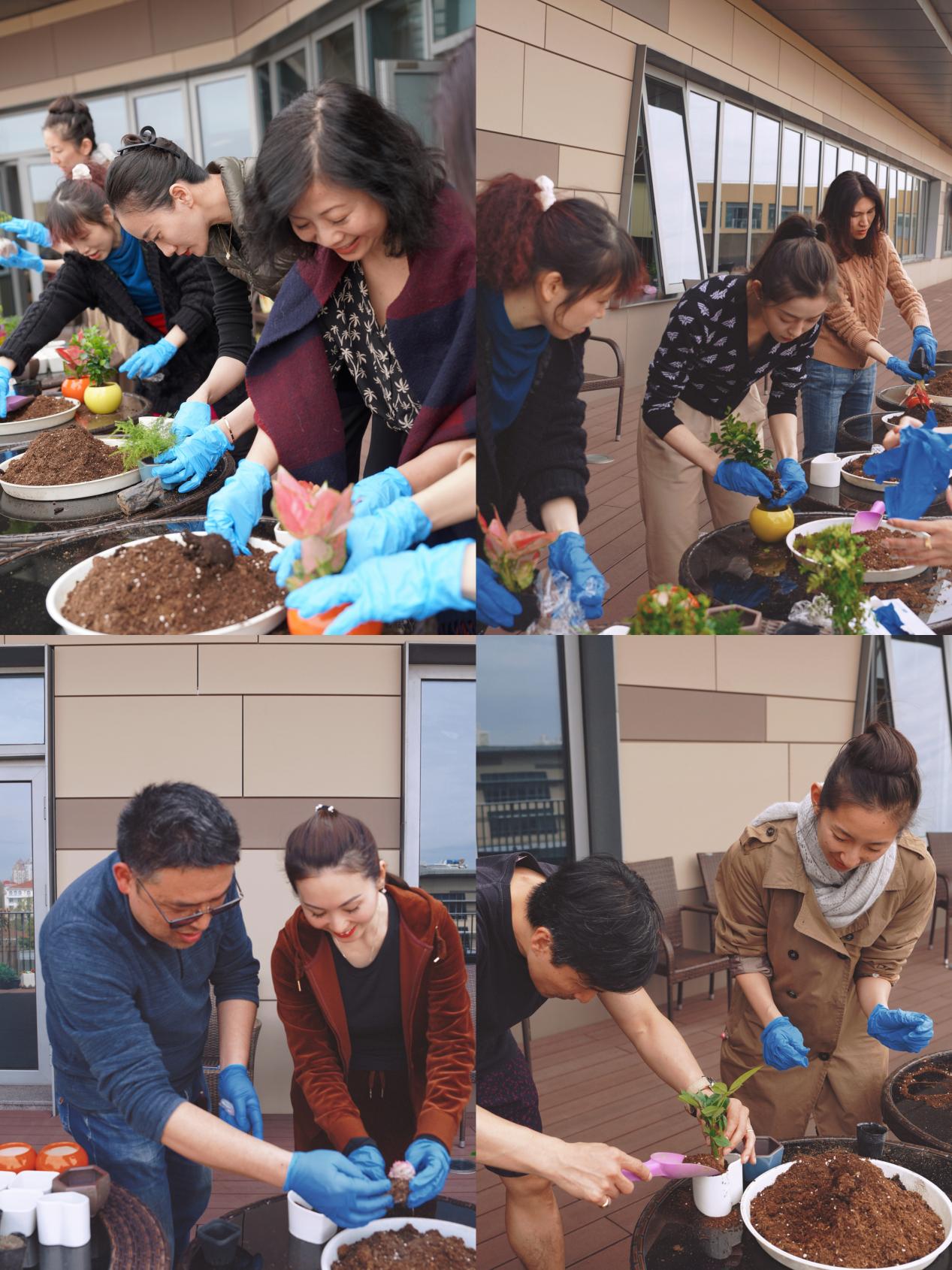 活动进行到尾声时,大家围坐在露台边,一边欣赏着自己的作品,一边交流着种植心得。大家纷纷表示活动中,不仅增进了彼此之间的友谊,也让大家体验到了园艺带来的乐趣和成就感更感受到了学校对于女性教职员工的关心和爱护