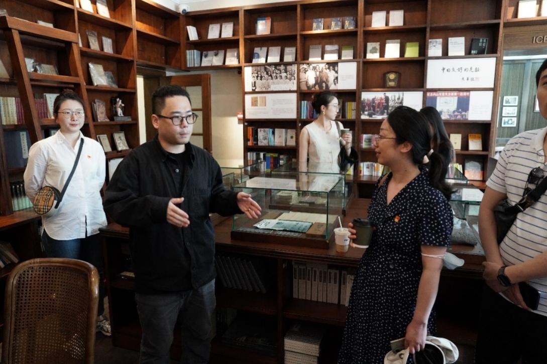 舞蹈学院的党员教师们来到这里,聆听店长讲述鲁迅先生与内山完造友谊的故事,看到刻着两人初识对话的那面墙,触摸鲁迅曾经阅读的进步书籍,进一步感受到了上海这座城市浓厚的红色文化底蕴。