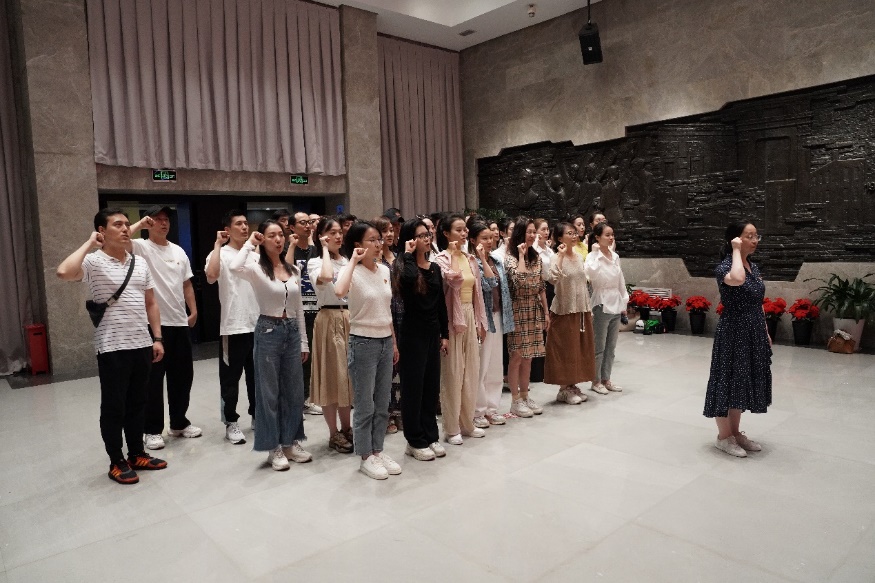 活动的第一项内容是重温入党誓词。在舞蹈学院党总支副书记徐辉老师的带领下,全体党员同志在中共四大纪念馆主厅内肃立,面向党旗庄严宣誓。伴随着铿锵有力的誓词,党员教师们更加坚定了对党的初心使命的坚守,感受到了作为党员肩负的责任与使命。