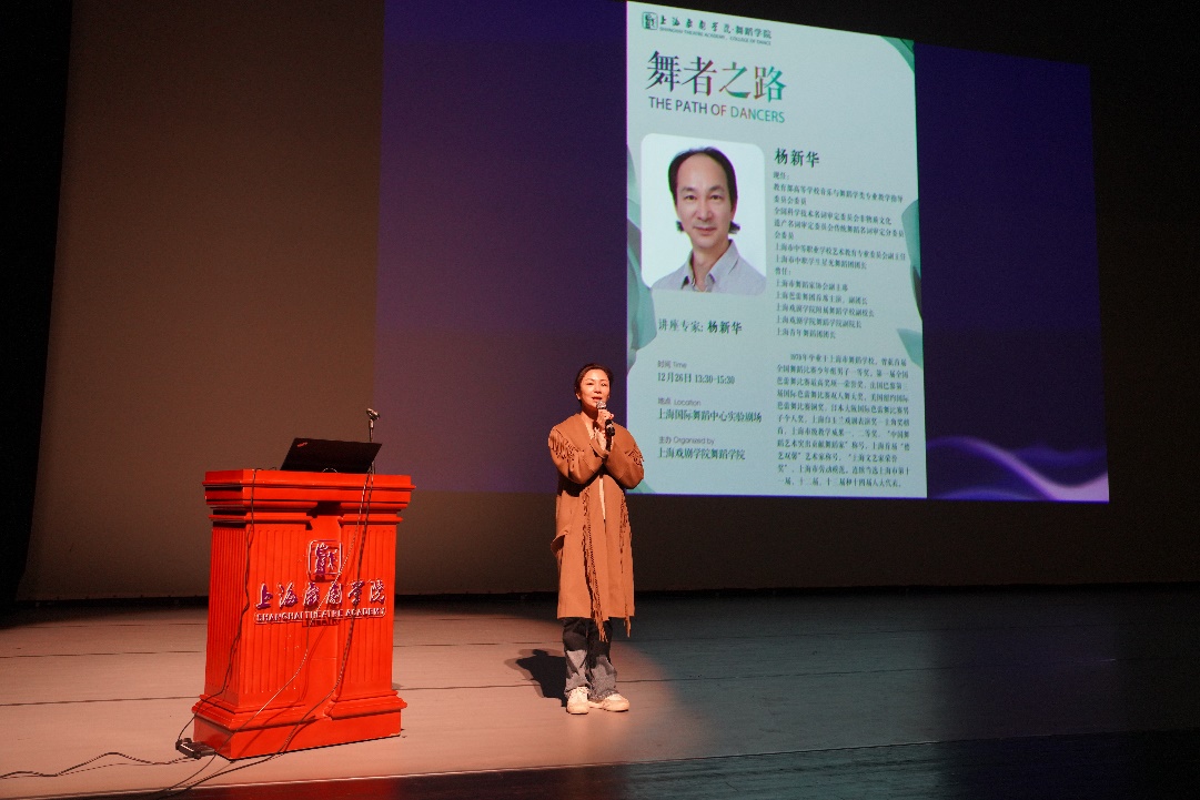 20241226日,舞蹈学院特邀著名芭蕾舞艺术家、原上海市舞蹈家协会副主席、上海戏剧学院附属舞蹈学校副校长、舞蹈学院副院长、上海青年舞蹈团团长杨新华老师为师生们带来一场题为“舞者之路”的讲座,旨在为我院学生专业发展给予一些实质性的建议。本次讲座由上海戏剧学院舞蹈学院副院长周蓓老师主持。