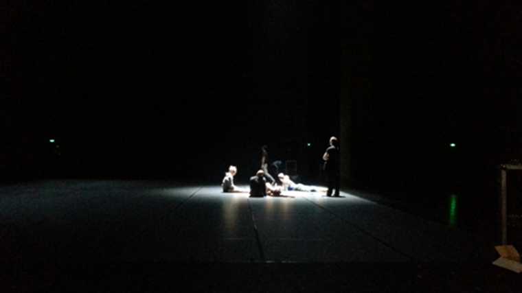 那次我们是跟洛杉矶舞蹈工作坊团队的人一起工作的,他们一共来的就只有四个人:制作人、技术总监、灯光师还有舞台监督,而我的任务就是负责舞台监督,做好舞台监督和剧院老师之间的沟通。我大部分时间都跟在师姐和另外一个姐姐后面观察她们负责的技术总监和灯光师。跟在技术总监后面的时候,他很耐心的跟我讲解了什么是border,什么是leg,以及drape, drop和curtain的区别是什么。我也通过剧院老师的帮助了解了一点舞台上的设备,最开心的就是我终于知道了马道是个什么玩意儿!看着老师升降吊杆,调着灯接着线。从排练开始我就一直跟在舞监旁边,把舞监的话传达给剧院老师,喊Q降吊杆、调内通、铺地胶等等。我记得很清楚,那时候他们团队如果碰到困难的话总会跟我说:“请等我去跟其他人商量一下好吗,我希望听听他们的意见,等我决定好了你再跟剧院的人解释吧。”我发现在他们之间,没有很明确的工作职务等级之分,每一个人都互相尊重着,有问题一起商讨。不仅技术团队是这样,舞台上的舞者也是如此,由于剧院舞台跟排练厅有些许的不同,大家一起商讨着位置的变换。而且每一个舞台上的工作人员都非常尊重演出,舞团的舞监要求一定要在舞台监督台使用耳机,不希望侧台传出噪音来影响舞者们的发挥和演出。至于舞者,在他们排练期间,我深深的感受到了这些舞者对舞台的热爱。他们跳舞的地胶是民工师傅铺的,贴胶带的时候都是踩着上去的,清扫的时候也没有好好的拖过,没有排练的时候师傅们也在上面走来走去,完全就没把舞台当回事儿。但是舞者们就会在彩排之前来热身,在没有拖过的,被师傅们踩来踩去的地胶上躺着,听着音乐进行锻炼。他们在排练休息时,也都坐着躺着在地胶上说说笑笑,就好像是躺在床上撒娇的孩子们一样。那时灯光师正好在调光,黑暗的舞台上只有一束光打在他们身上,那一刻真的是有点想哭的冲动,心里想着要是在剧场工作的人都这么热爱着舞台该多好,在自己喜欢的地方做喜欢的事情是多幸福的一件事……所以在那之后我一累了站不住就像他们一屁股坐在舞台边边角角的地方,看着台上的人,台上的灯,台上的一切.也许在有经验的人看来我所说的太夸张,但这就是一年级的学生最真实的感受。