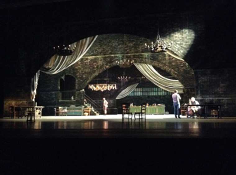 去的第一天不是在舞台上准备开始装台,而是看着英国技术员工们和我们的民工师傅们一起卸货。几个小姑娘就站在旁边呆呆地看着,什么忙也帮不上,因为在这些工作上并不需要太多的语言交流,英国人挥一挥手指一指师傅们就全知道该怎么做了,这次接触的师傅们也比上次的团队好很多,经验丰富而且乐于帮忙,有的时候英国朋友们让我们帮忙翻译,我们还没理解明白他们的要求师傅们就已经先一步知道该怎么做了。我没有看太久的卸货,因为英皇的吊杆经理需要我的帮助来挂各种各样的幕布。英国人都是这样,第一眼看上去很高冷,但是相处没多久就会发现他们非常可爱,这个吊杆经理就是这样,他叫Andrew Collett,我们叫他Andy。在演出之前我一直跟着他,帮助他的工作,他也教会了我许许多多的知识和良好的工作态度。《堂吉诃德》这个芭蕾的制作非常大,所以Andy跟我说我们悬挂的东西非常多,挂完之后基本上大剧院主舞台的吊杆上全都挂满了。也正是因为东西太多,所以吊杆布景经常会跟已经挂好的灯有点冲突,所以Andy的工作是重上加重。挂幕的时候Andy总会指一指在他旁边师傅,然后问我:“Are they happy?”我看看师傅们跟他说师傅们挺高兴的。他要求着说:“Help me to ask them.”然后我就问师傅们他们是否开心,师傅们开心的大笑着:“跟他一起干活我们挺高兴的!”Andy要真的看到师傅们笑了,才会安心的继续工作。后来剧院老师跟我解释说,他们英国人希望每个人工作的时候都是开开心心的,所以才会一直这么问。通过Andy,我基本上把吊杆上挂的各种幕认了个遍,什么样的幕布挂在哪里、怎么挂、效果是什么、需要另外不同的效果怎么办、会不会碰到电线和灯……他们英国人也非常讲究效率也非常注重团队合作,Andy如果在一个吊杆布景上碰到了什么问题,而这个问题会影响第二天灯光的调试,他就会跟剧院的老师要求说能不能今天晚上结束的时候把吊杆降下来,他第二天早上自己早来一个小时把它解决好,然后让灯光调试能够顺利进行。他也会自己做一些装置来使吊杆的景变得更有创意,他会拿出他的小装置,装好了之后笑嘻嘻的跟我说:“Aha! Clever Andy!”在和Andy的工作过程中,我跟剧院的舞台老师也配合的越来越好了,老师非常的尽责也非常有效率,也会在工作过程中给予我很多指导,告诉了我很多舞台上的技巧和注意事项。在所有悬挂完成之后,我帮助Andy和剧院老师开了个Fly Q小会,把所有的Q都梳理了一遍,开始进行排练的准备。
