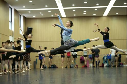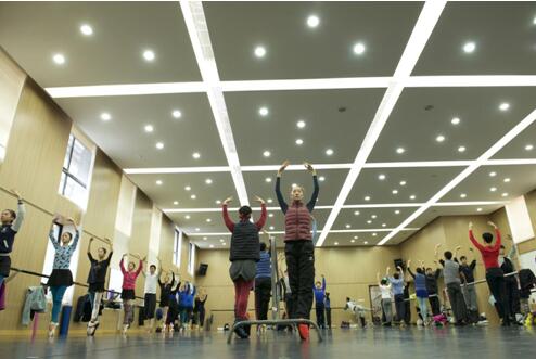 上海芭蕾舞团在龙华路上的创意大院内。赫赫有名的“上芭”其实非常低调,只有几幢小楼,藏在大院的一角,但那其中却是别有洞天!打开一楼排练厅的大门,扑面而来的是温暖和光明。排练厅非常大,演员们早早都到了,有的在压腿,有的在穿鞋,现场的氛围轻松愉快。做完准备工作后,伴随着钢琴的乐声,热身开始了。没有浓妆艳抹,没有华丽的戏服,甚至每一位演员的练功服都是不同的,但这种最本真的舞蹈状态却有一种强大的吸引力。虽然我们听不懂训导老师口中的法语术语,不知道每一个动作的训练意义,但那高挑修长的身姿,灵巧的步伐,轻盈而有力的跳跃,欢快的音符,是每一个人都能体会到的,这种对美的感悟是与生俱来的。在视觉与听觉双重美的享受下,大家都陶醉了。当训导老师说下课时,我们仿佛如梦初醒,这才发现已经过去一个小时了,感叹时间如白驹过隙。