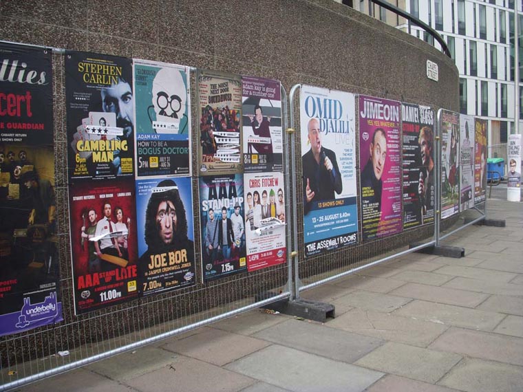 在爱丁堡,大的剧院都去服务国际艺术节了,因此边缘艺术节除了几个中小型专业剧场外,其他都是各种空间改造过来的演出场所,包括教堂、学校礼堂、展示厅、餐饮场所等,有的演出甚至是在几个较大的公园和广场内搭建帐篷进行。这些根本称不上专业化的演出场所,但却承载了45000场的精彩演出,造就了爱丁堡边缘艺术节蓬勃旺盛的生命力。