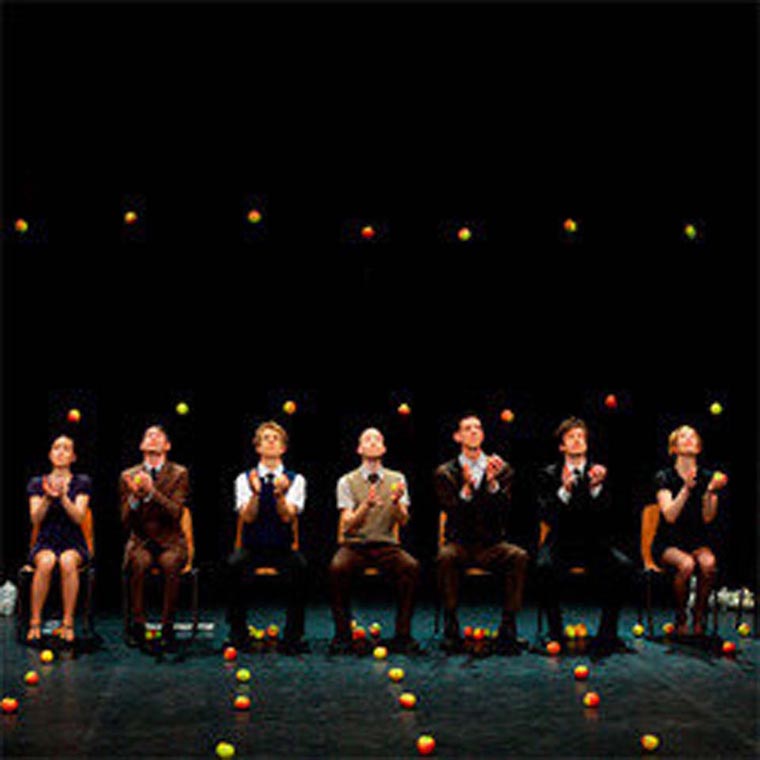 此次艺术之旅,笔者深感真正动人的演出艺术是不需要太多语言的。其中令人印象深刻的几出剧目,想来几乎都是没有语言的形体剧(Physical Theatre)。比如《There We Have Bean》,改编自小说《挪威的森林》中的一段,仅靠一男一女两名演员的形体表演,就形象地表达了男主角对好友逝去的痛苦以及与其女友孕育新的爱情的历程。尤其是舞蹈演员身体中的每一部分都充满张力,即使一个脚趾,都有叙说故事的能力。再如国际著名先锋剧团Gandini Juggling的新作《Smashed》,十来个演员通过杂耍苹果的方式,非常生动真实地反映出现实社会的某些现象。而壁虎剧团的作品《迷失》(Missing),虽有语言,但仅仅作为辅助。整场戏中,虽说出现了大量的意大利语、西班牙语和法语,但却一点都不影响不懂这些语言的观众的理解力。这场戏中,“光”是表达内容的重要手段。黑暗中,女主人公面前发着光乱飞的电脑、电灯等办公用具,均表达了她内心深处被唤起但却又不敢面对的儿时回忆;以一定物理轨迹移动的发光框架中的表演,是回忆的倒叙,也在探寻着女主人公心理迷失的根本原因。