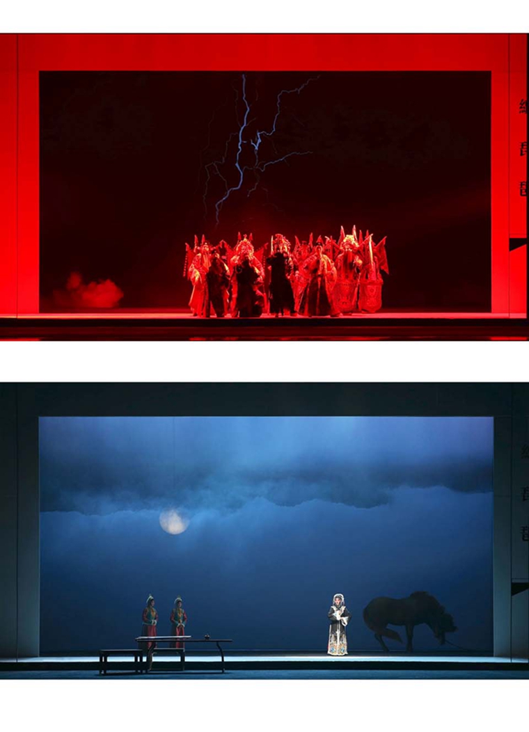 刘杏林:回到前面话题,民族传统艺术是生命力是巨大的。据不完全统计,中国戏曲剧种有三百六十多个,在国内我们面对的戏曲演出数量,要远远大于话剧和歌剧舞剧。我感到,不应把这仅仅当作职业机会,戏曲舞台的美学原则既是自身文化血脉的联系,又是创造新形式的重要参照。应该重视它提供的文化传承途径和对创作灵感的启发。传统戏曲舞台美术最重要的价值,在于具有一种完整的认识世界,解释和表述世界的体系,一种约定俗成的语法规则。诸如暗示而不直接描绘剧情环境,中性化或抽象化的视觉形象,以一当十,以少胜多,以不变应万变的表现手法,由此及彼的借喻功能,与演员表演的相互依存以及单纯、集中、凝练的造型风格。传统戏曲舞台以此创造了一个与日常现实相对应的世界。其实传统绘画的构图,传统建筑的空间组织,传统诗词的语法,都有可能在创作时,影响到我们的审美判断。