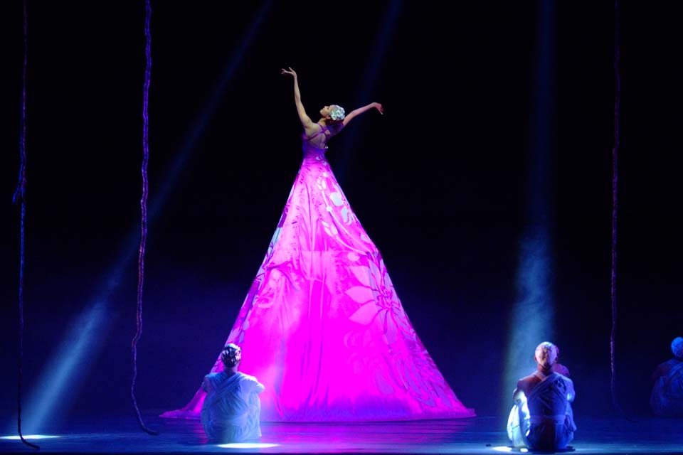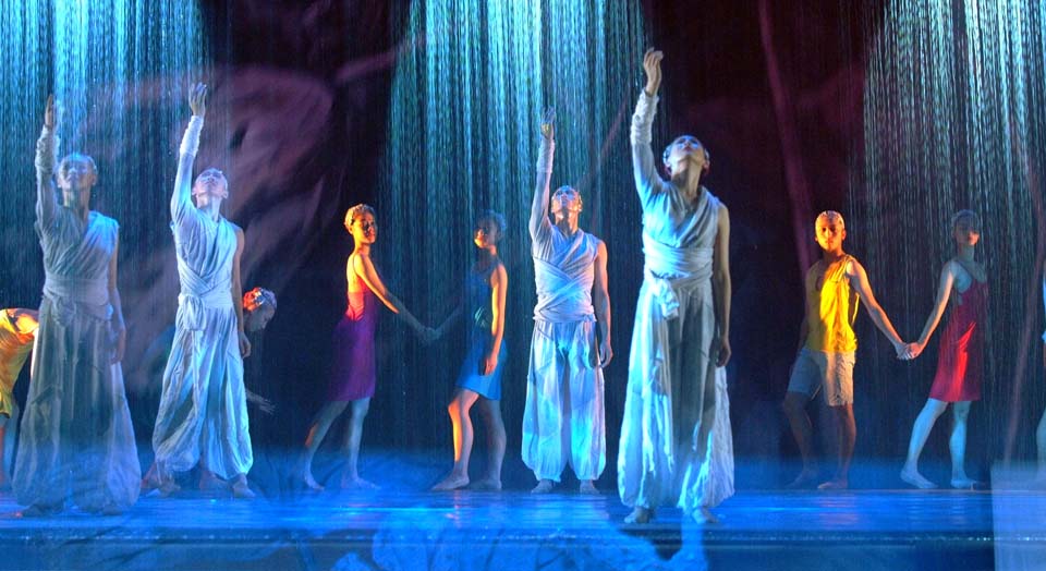 尾声天空突降甘露,将整个舞台唤回到自然原始的形态。荷也神奇的重现生机(见剧照16)