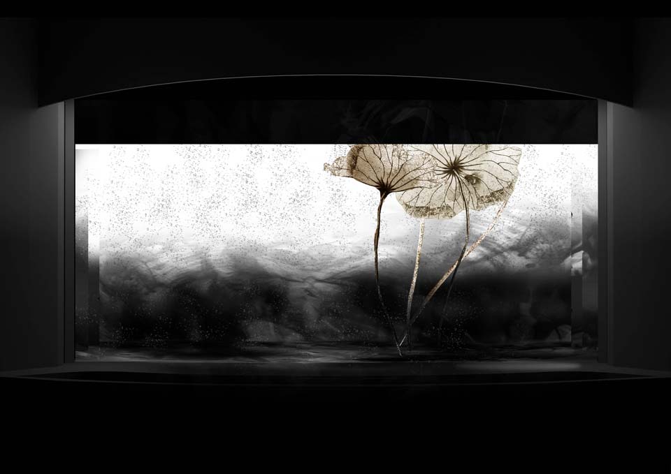 泥中的荷的制作是一个较长的过程,表面的肌理效果是以软布打底,在上面播撒了多种会起化学变化的固体和液体而制成的。(见剧照2)