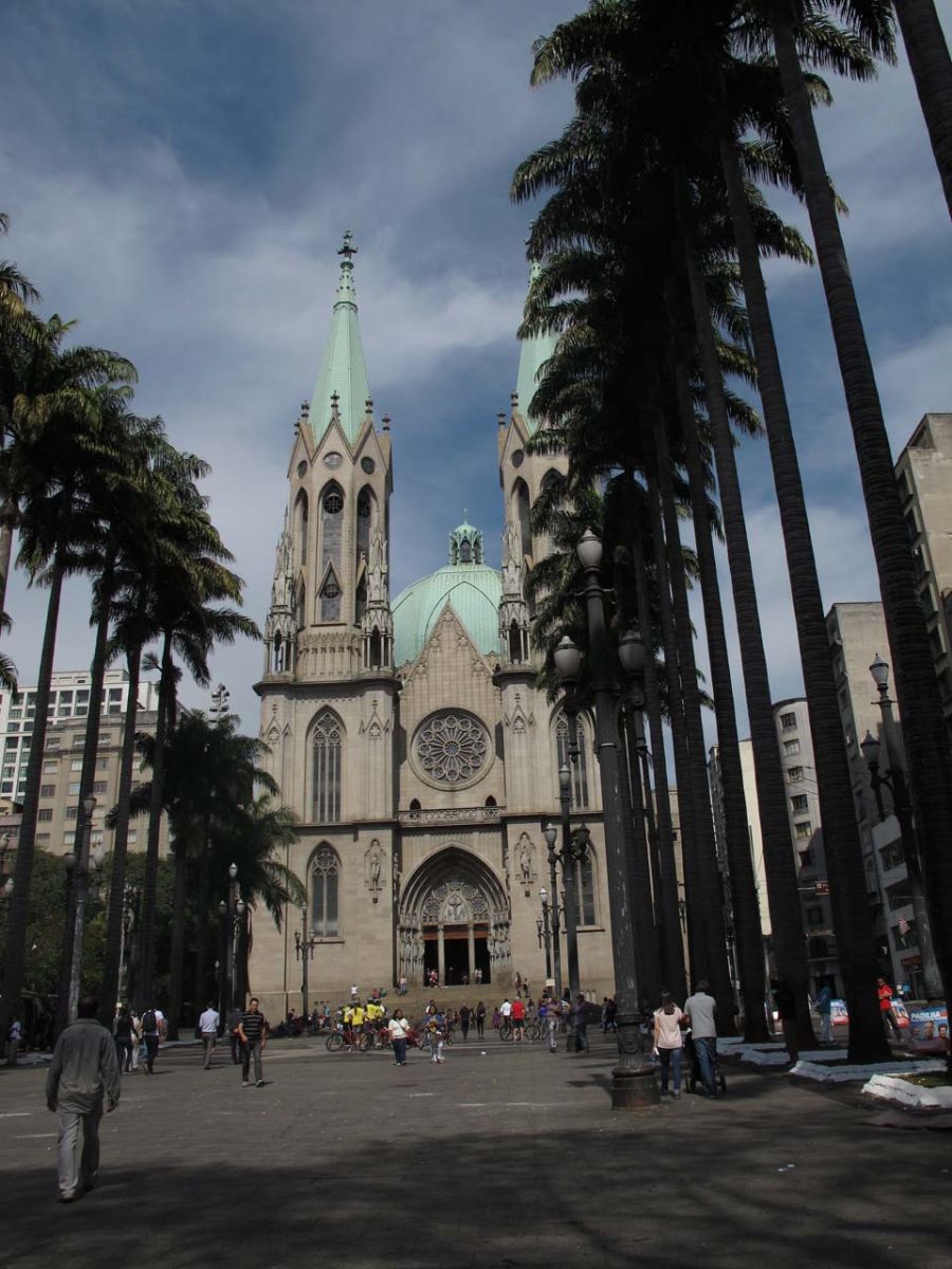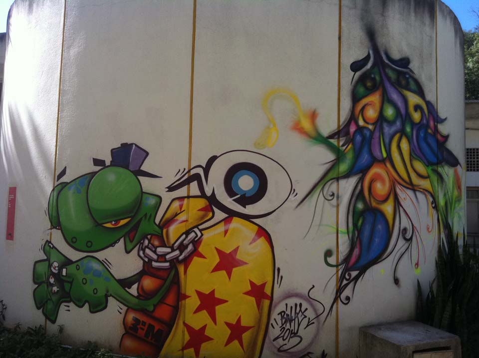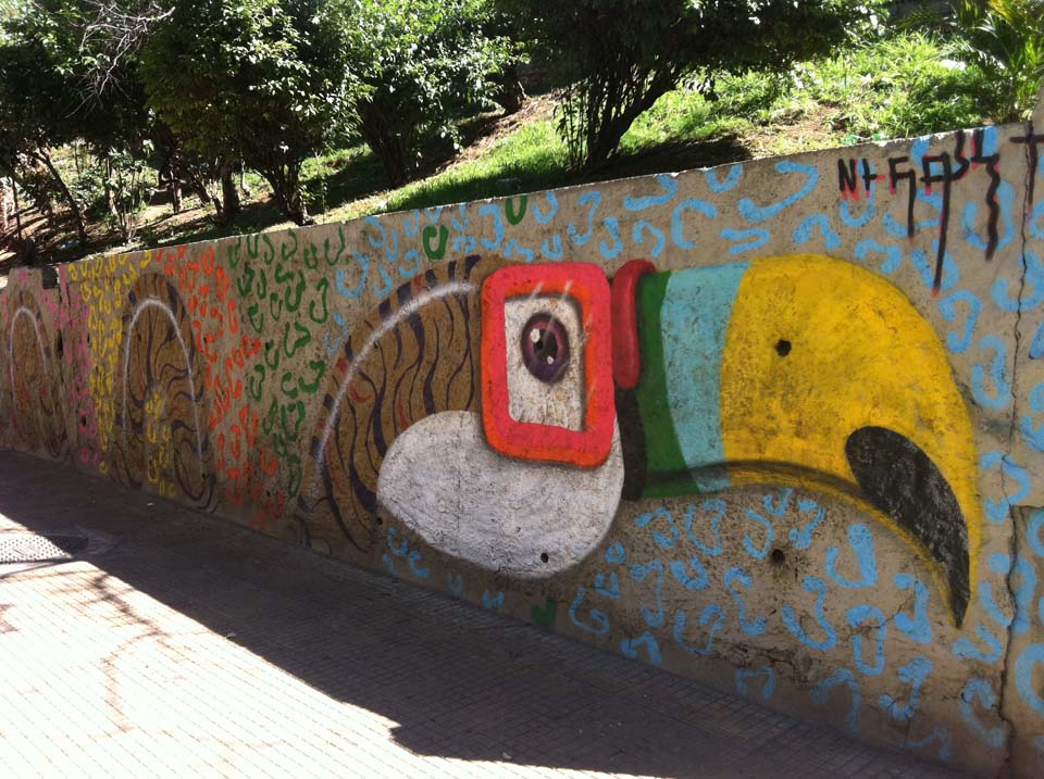 近30小时的路程,终于到了巴西。飞机抵达圣保罗上空的时候,见到的是整个城市茫茫无边、非常庞大。 天空很是湛蓝,城市中到处种植着棕榈等热带植被,还有各色不知名的花朵点缀其中。早在上世纪七八十年代巴西经济高速发展的时期,圣保罗曾名扬四海。时至今日,圣保罗却像一个没落的贵族,没有想像中的那样繁华,在生活区街头看到的楼房都不太高,以两三层楼房为主,中间夹杂着一片片高楼,电线横七竖八毫无无章法。街道和建筑都显得有些旧和乱,而街巷间旧建筑外墙多有涂鸦,变形的字母、夸张的动物、绚烂的花卉、抽象的人物,以及各种怪异的符号,作画风格也是非常多样,许多涂鸦颇富有艺术性,尤其是一些商店和高架桥下的涂鸦,常给人惊艳。圣保罗是座名符其实的大城市,不仅是巴西第一市,在整个南半球也是首屈一指的。 人口几乎占了巴西全国人口的六分之一,城市一大,各种问题也就开始显现,首先是交通,每天我们来回上课的路上,车总是走走停停,堵车现象不亚于上海。其次是安全问题,因为悬殊的贫富差距,这个城市充满了不安的气氛。但是当看到圣保罗十八世纪建立的皇家花园、巴西民俗展览馆、欧式古典大歌剧院、纪念发现南美洲而树立的开拓者雕塑、巴西独立纪念碑时。又让人从中感受到了巴西发展史中的民族特色,体会到那些深受欧洲文化影响的民族韵味,也可以在这里寻找到印第安民族的痕迹。
