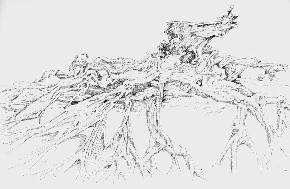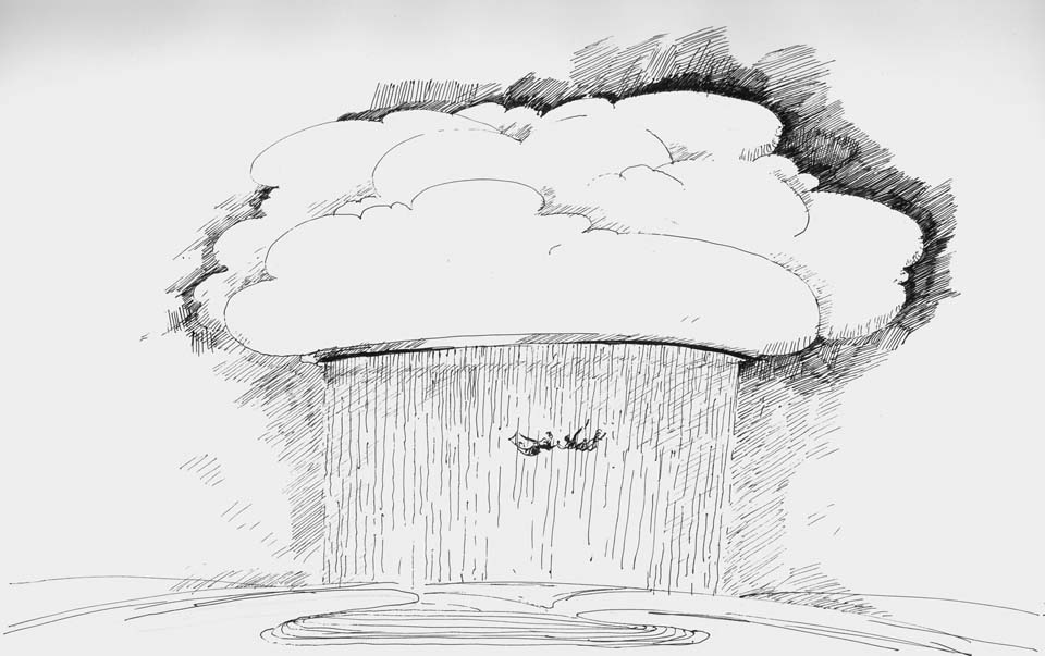 我是在去西藏的旅途中读完该戏剧本的。在我穿过雪山、森林、大草原、戈壁滩,来到位于海拔4500千米以上的高原,我一路亲眼目睹了人的贪婪所造成的不可逆转的灾难。小到一滴水,大到一颗参天古木,人类发展遗留下来的痕迹随处可见。与我为北京奥运会开幕式所设计的那促使观众抬头仰望的投影屏幕不同,我在《吸引》的设计中,则有意识地让观众低头俯视。通过这个特定的视角,我使观众在自己和戏剧动作之间保持一段批判性的距离,时刻提醒他们去敬畏自然、爱护我们的生存环境以及反思我们日常活动对环境所造成的后果。
