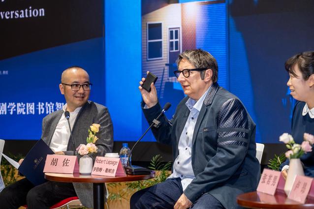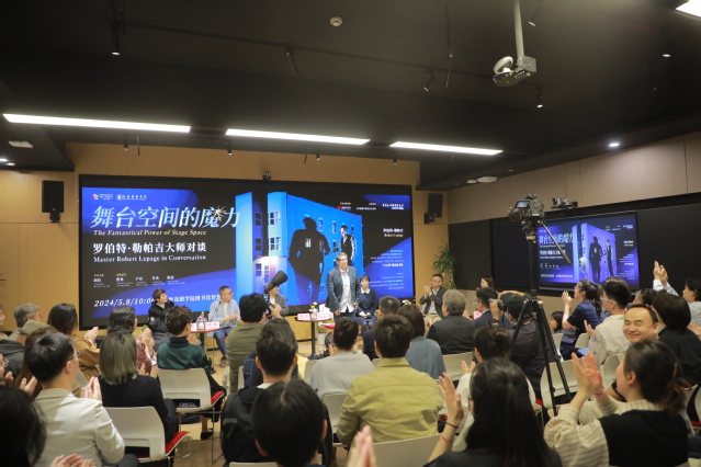 2024年5月8日上午,国际著名跨界艺术家、当代最具影响力的视觉剧场大师之一的罗伯特·勒帕吉,受邀在上海戏剧学院华山路校区为师生带来了一场主题为《舞台空间的魔力》的学术对谈。