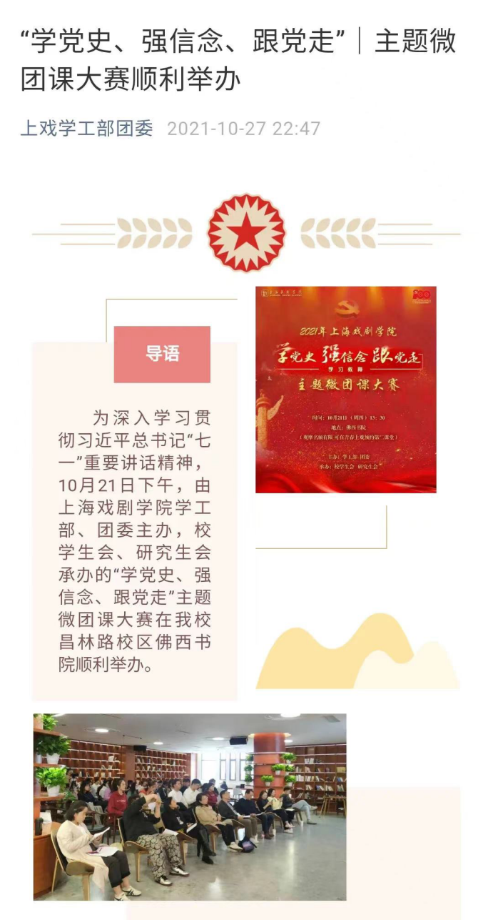 22.文汇报:从表演角度走进“四史”学习,上戏“微党课”迎来近900名师生线上观摩