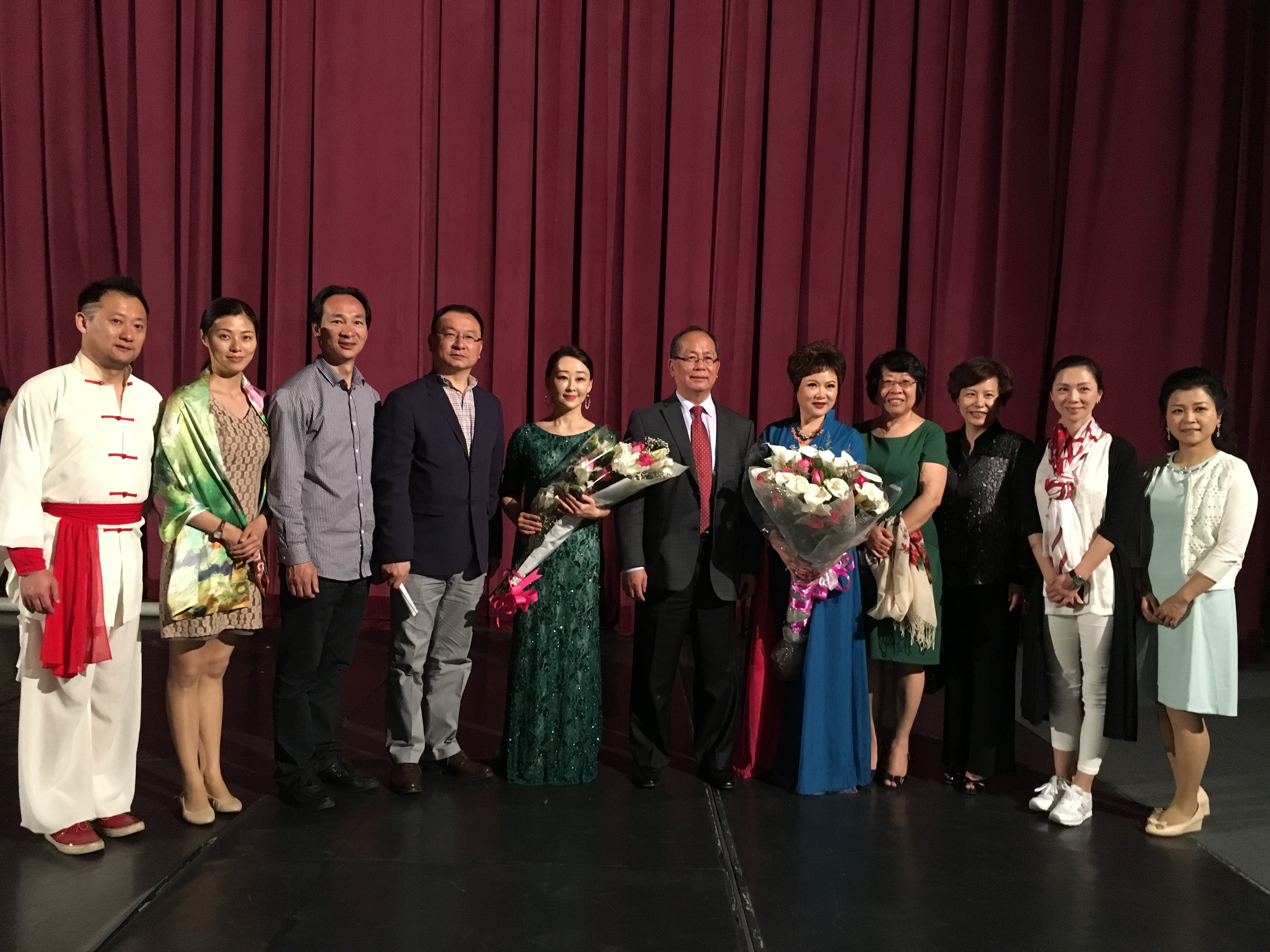 邱小琪大使携夫人及文化参赞庄肖丽演出团合影