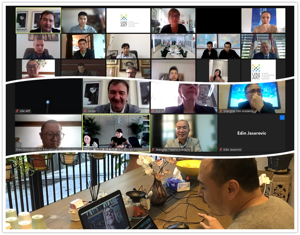 由塞尔维亚诺维萨德大学联合中国传媒大学共同发起成立的“中国-中东欧”艺术高等教育国际联盟(China-CEEC UNIART)于当地时间10月27日上午9点召开第一次全体成员云会议并宣布成立。