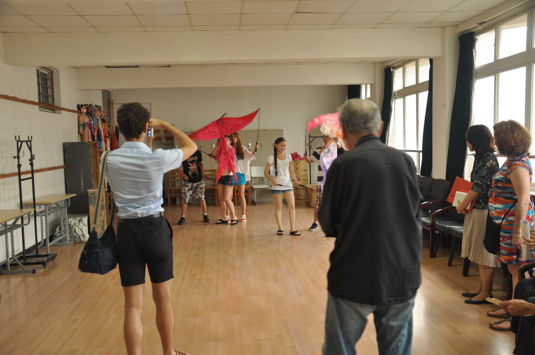 三位戏剧名家台上诙谐幽默的演讲,引发了一阵阵笑声,与同学们的互动相当密切。艺术原本无国界,木偶更是世界性的民间艺术,即使不采用语言表演,同学们也能用形体语言来与三位法国艺术家交流。随后,三位法国艺术家还观看了由同学们表演的杖头,布袋,皮影和提线这四大木偶品种的小剧目。大师们为中国木偶皮影艺术感到十分高兴,有这么一大批中国青年们愿意传承和创新这一民间传统文化,同时也表示他们这一到访,不是来教学的,而是来学习的,此次上海之旅,用中国古话说来可谓是:教学相长!并且欢迎将来有来自上戏的学生到他们的学院去留学。