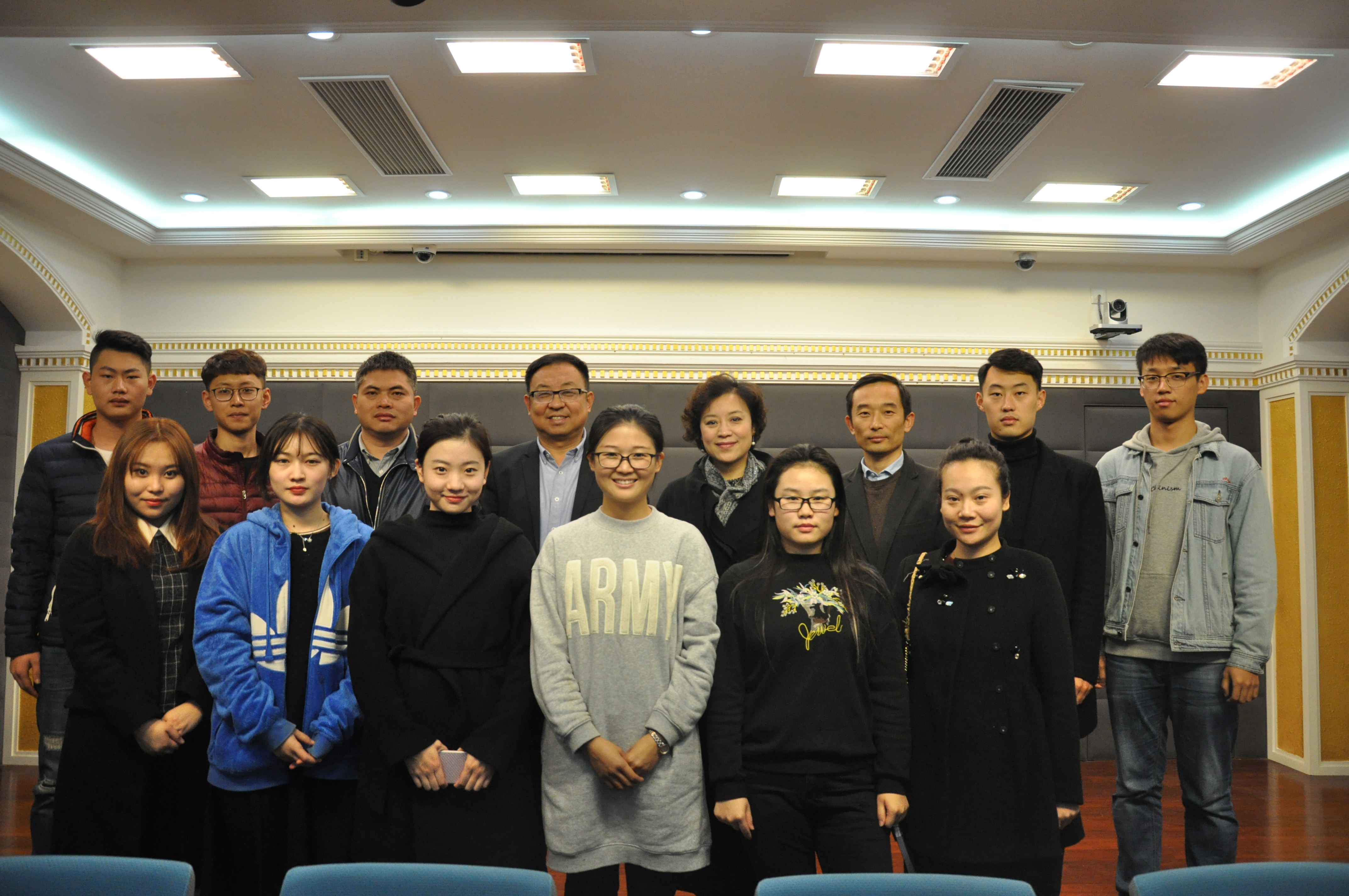 海南大学京剧辅修班开班第二天,11月28日下午3:30,开云足球首页官网下载党委书记楼巍在戏曲学院院长李佩红、支部书记刘春友和副院长黄暾炜的陪同下,与海南大学京剧辅修班同学亲切座谈。