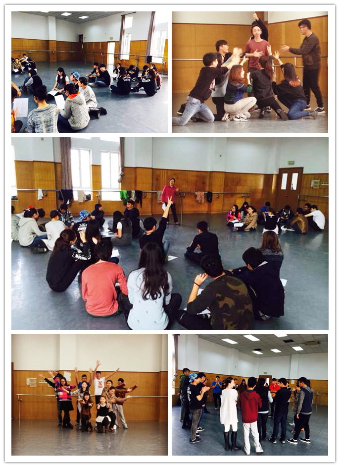训练开始前,赵老师先带领大家做了一个破冰环节,这个环节中共有三个口令,分别是森林大火,樵夫砍柴和松鼠搬家,发出口令后,大家要迅速转换组合最后形成一个由两个樵夫一个松鼠的三人组合,这个环节意在考验大家的应变能力和反应能力,在游戏的过程中使同学们相互认识,为后面的训练打基础。接着,老师让同学们拉起手来围成一圈,口令发出后大家以10人为单位自由结为三个组,并给这三个组下达了两项任务:一是让大家互相了解,说说自己的家乡,来自哪个专业,作为学生干部有什么资源和优势,每个组有何元素,最后派一位代表发言总结出来。代表在发言的时候元素和资源真是多种多样,有激情、阳光、热情、领导力、责任感、团结的协作、语言的丰富等等;二是每个组给10分钟的准备和筹划时间,完成一个团队的展示,展示包括一首创作歌曲,一套舞蹈动作和一个创意亮相造型。同学们在这个环节中都非常积极的参与进来,发挥各自的专业优势,展现出自己的专业特色,在紧张的排练过程中也同时锻炼出了大家的短时间思维思考创新能力,让大家努力迅速的走进这个陌生的团体中,并在这个团体中发挥自己的能力。三个组每个组在短短的10分钟内都完美的完成了老师交给的任务,有的以“爱国”为题材进行创作,有的以“校歌”为基础进行演绎,还有的以“当代流行歌曲”进行他们的再创作为大家展示出来。在训练中,队员们无不表现出贡献精神,他们发挥自身优势,学习他人之长,共同完成目标任务,真实地体现了一个团队的团结与协作,沟通与协调,真诚与信赖,激情与挑战,勇气与信心,素质与心态,见解与共识。在此过程中,也锻炼和提升了大家的制定目的、策划方案、组织指挥的综合能力。