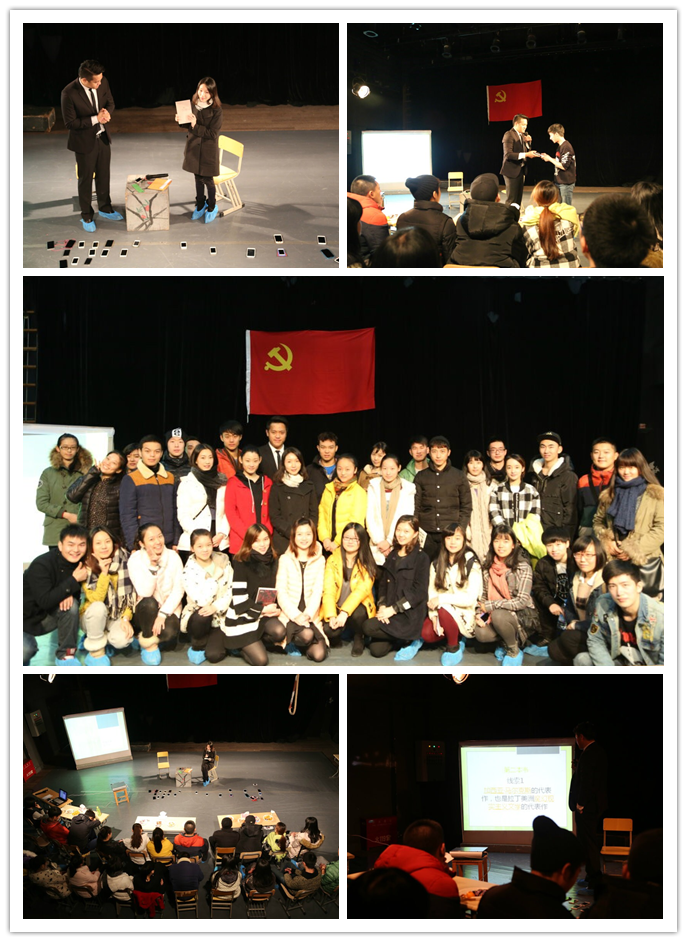 活动开始前,便要求在场参与活动的所有人交出自己手中的手机并把铃声开到最大,拜访到主持人身边。这一过程是为了选出活动下一个环节中参加活动的人。在大家交出手机坐毕后,进入了活动的第一个环节。在音乐声中,学生党员张智博和俞维盼分别为大家分享了《四书五经》和《目送》,《四书五经》的儒学经典让人自省,而《目送》中的小篇散文——爱情,则让人向往,主持人访谈的形式也让人轻松,更能体味书中的美好。