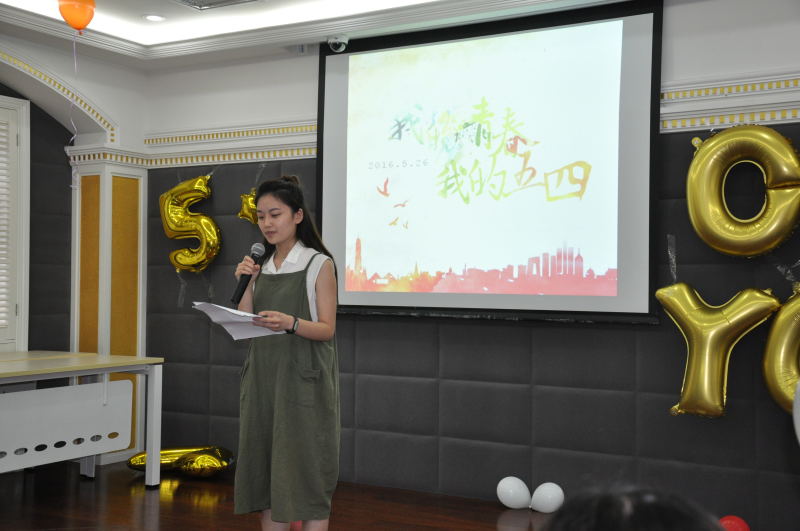 接下来主持人给同学们介绍了五四青年节的历史背景、意义以及五四精神的核心内容,提问环节同学们踊跃举手发言,幽默风趣的回答使得会议室笑声连连。而后,学生代表上台演讲,与同学们分享自己与五四精神有关的故事与想法。参加此次活动的除了已熟悉了这个校园的师哥师姐,也有面孔尚未稚嫩的师弟师妹。柯彩煌师姐在发言中讲到“每个人的一生中都有一段美好却又短暂的青春,我们要让这段短暂的青春充满意义和价值。” 她提到了在上戏读书的这些年所经历的,也许回忆起过去艰苦的训练,至今还能感受到那份酸楚与痛苦,可是当一切努力最终化为了她的成功,那么曾经所尝过的苦楚,再回味时已经泛起丝丝甜味。刘心同学说道“你的追求可以与众不同,小到只要不危害社会或大到改变世界,但就怕你无所追求”。许多人认为高中以考大学为目的,那么大学又以什么为目的?难道人生仅限于对学校的追求么?或许在我们刚刚进校似乎还不适应紧张的学习生活,会有些抱怨,有些松懈,甚至脑海中充满了浑浑噩噩、得过且过的逃避念头。可人生的价值应在于对自我对事物的无限追求。正如鲁迅先生曾说,"不满是向上的灵魂" 。《大学》开篇云:“大学之道,在明明德,在亲民,在止于至善”。