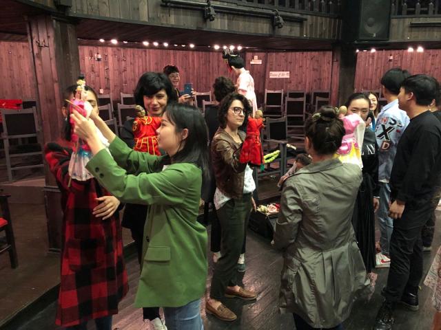 本次艺术节,木偶专业除了带来了精彩的演出外,主办方还邀请我校为他们当地的年轻演员以及艺术学校的大学生进行两场工作坊,以便两国木偶方面的交流及学习。工作坊由木偶专业石文慧老师带领学生完成,石老师介绍了中国木偶的历史,当大家听说中国木偶已经有近两千多年的历史时,都发出赞叹的声音。石老师还讲解了中国木偶的品种分类,以及部分不同种类木偶的操作方式,同时强调,无论是哪一个品种的木偶都非常注重基本功的练习,这是一个漫长又艰苦的过程,但是为了能够将木偶完美的呈现出来,学生们都必须要经历这样一个过程。只有刻苦的锻炼,才能将这一宝贵的非物质文化遗产更好的传承下来。经过两天的工作坊,阿尔巴尼亚的学生及演员们都对中国的木偶戏产生了浓厚的兴趣,并且表示这一古老的技艺非常值得学习,演绎起来也独具魅力,真诚的感谢我们为他们带来了如此精彩的工作坊,期待未来能有更多的机会去了解和学习中国的木偶戏。