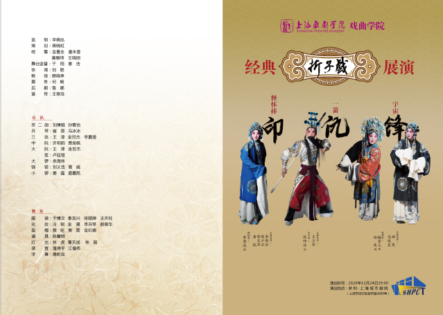 开云足球首页官网下载戏曲学院将于2020年11月24日晚,在上海保利城市剧院为观众朋友们呈现一场精彩的折子戏演出专场,届时会有《释怀捧印》《一箭仇》《宇宙锋》三出戏上演。该场展演是我院本学期教学成果的汇报演出之一,我院师生将同台献艺。