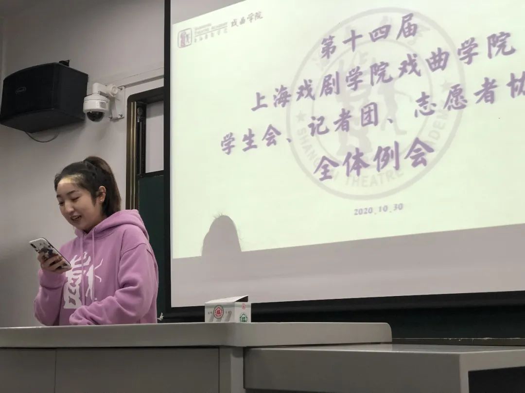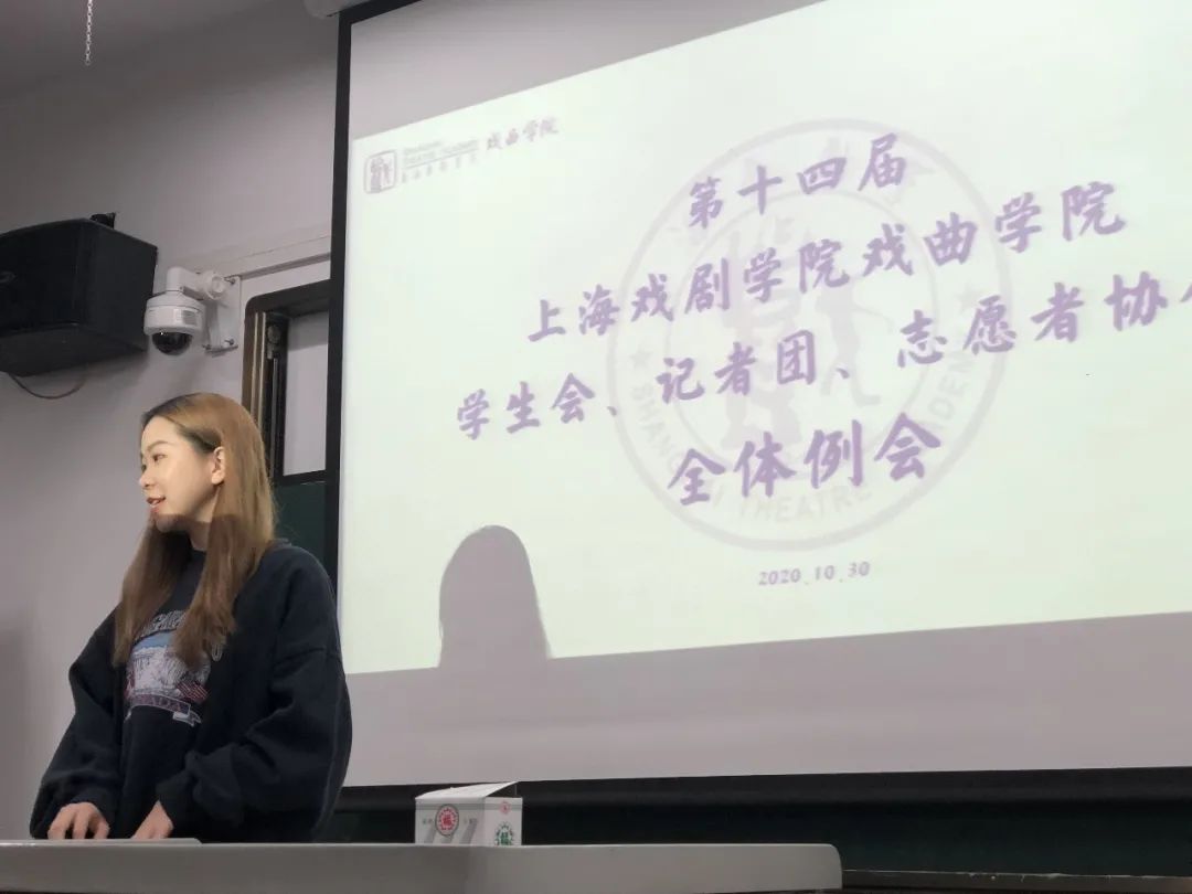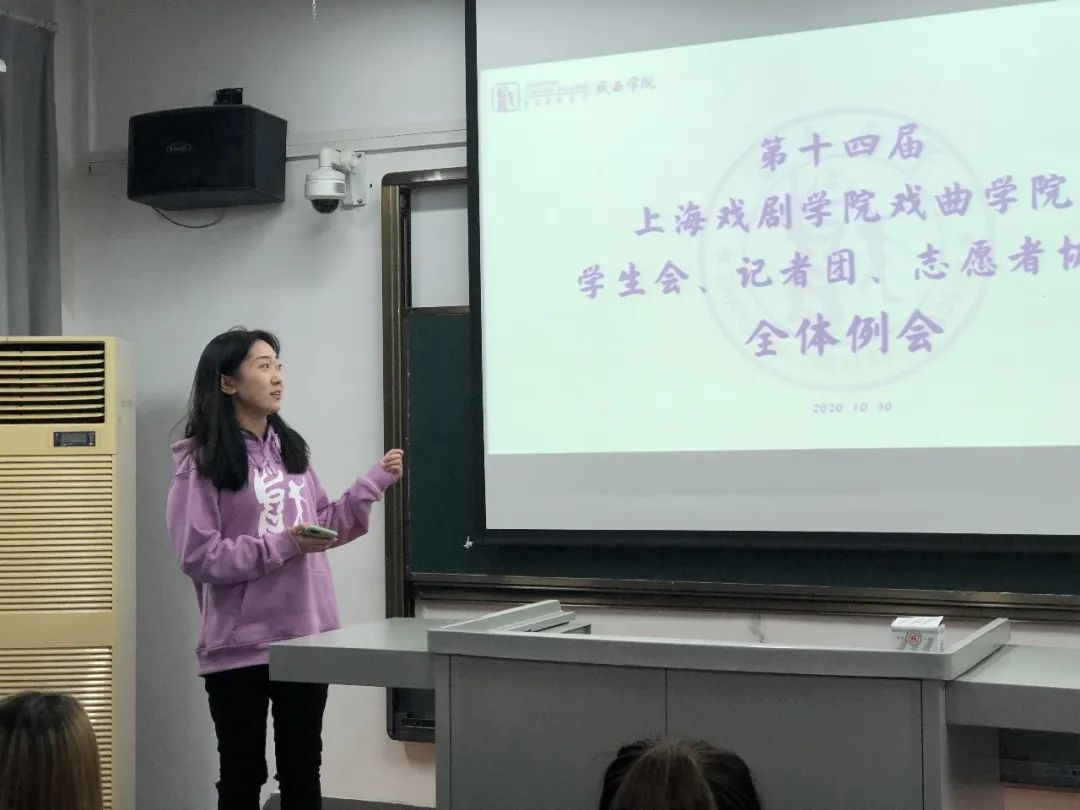 在经历了投递简历、学院面试等环节后,戏曲学院学生会、记者团、笑哈哈志愿者协会都迎来了2020级的新鲜面孔。10月30日,在教学楼414召开了学生会,记者团、笑哈哈志愿者协会的本学年的第一次例会。