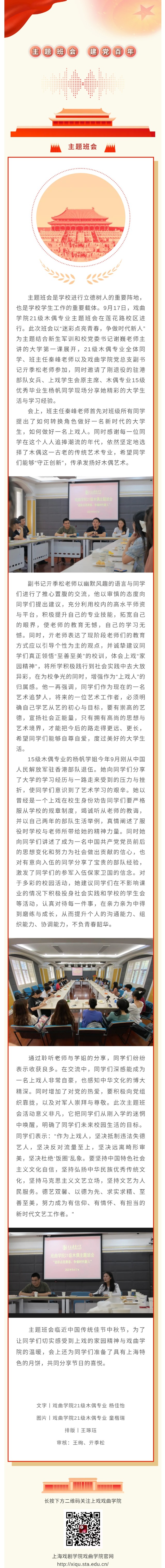 “迷彩点亮青春,争做时代新人”戏曲学院21级木偶专业主题班会顺利举行