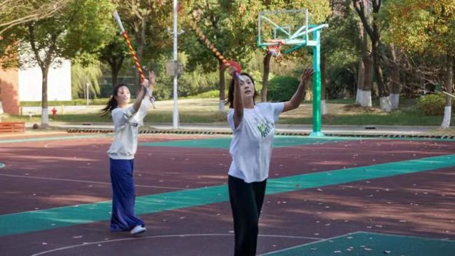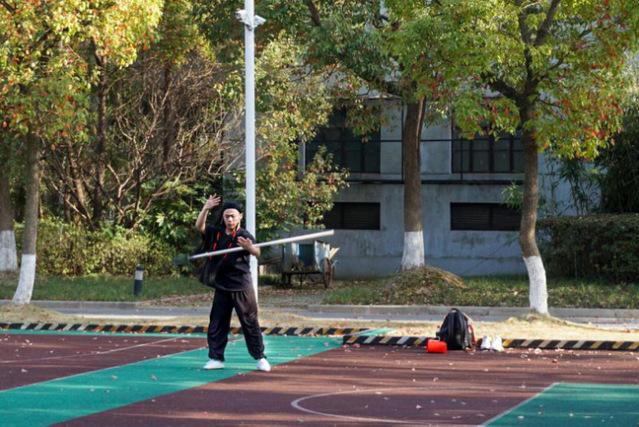平放在地上的道具叫做“双头枪”,是把子课学习时需用到的道具之一。(“莲墩墩”也学到了一个名叫“皮猴儿”的枪花,厉害吧!)这就是京剧表演专业的同学们网课的一天啦!