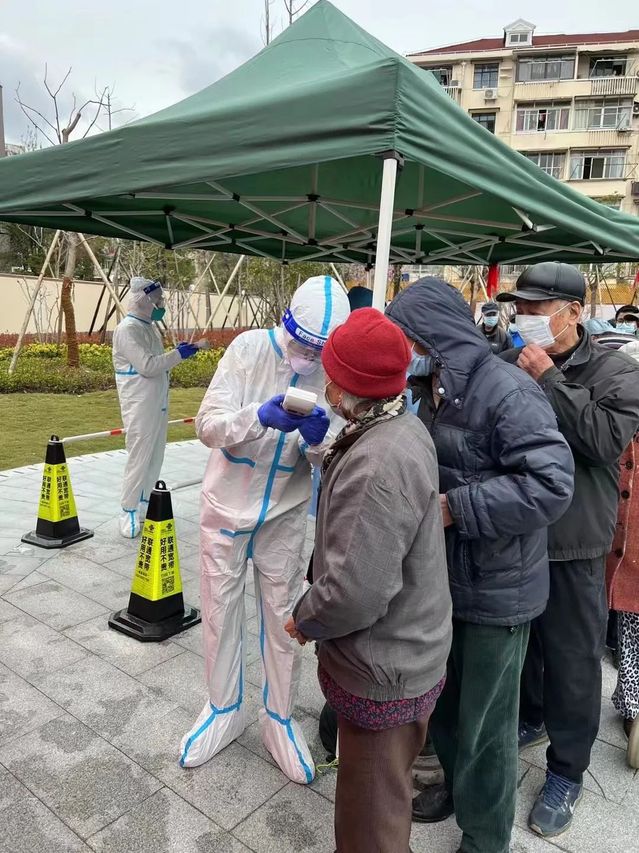 从“小蓝”到“大白”,体会到了医护人员的不易。在上京二团党支部的号召下,我主动报名参加志愿者,为龙华新村的老人们进行核酸检测。身穿防护服、引导老年人登记健康云、维持好秩序是我的工作,只有在结束工作时,我才能“奢侈”得享受到这短暂的放松时间。这样的志愿活动让我觉得意义非凡,抗疫是需要我们每一个人的付出与努力。作为一名中共党员,主动冲在第一线既是义务也是一份责任!